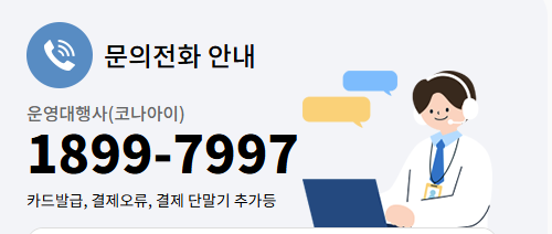 카드발급, 결제오류, 결제단말기 추가 등 문의전화 안내드립니다.