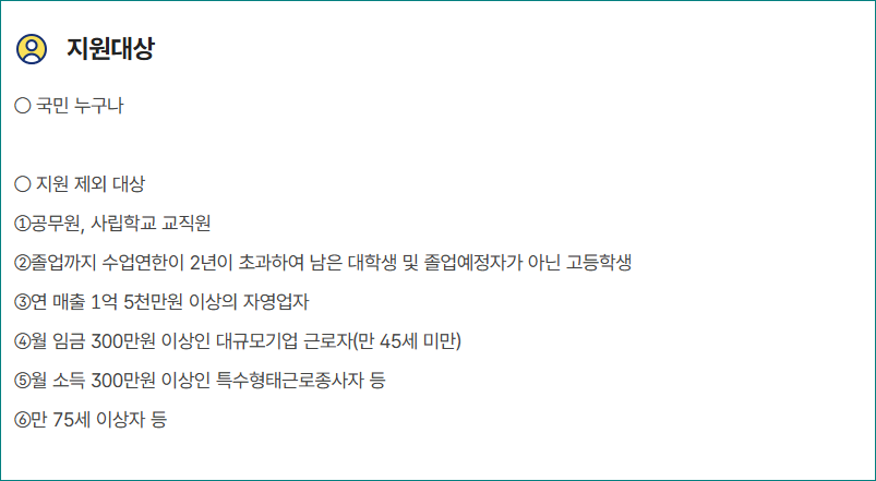 지원대상은 아래와 같습니다.