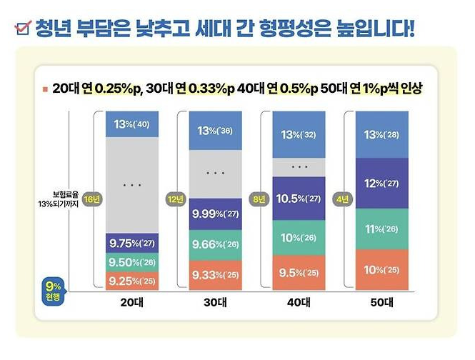 현행 9%인 납입료가 2025년 부터 다계적으로 13%까지 인상된다는 내용입니다.