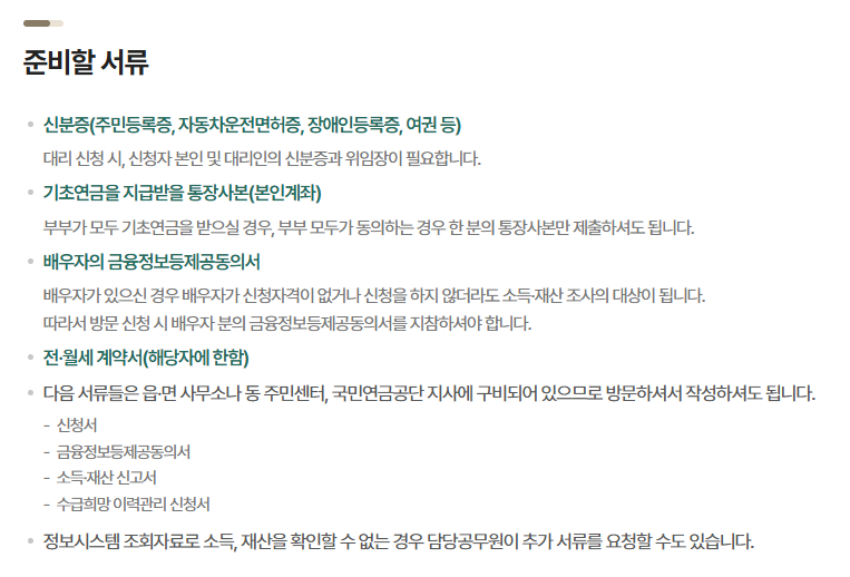 Q.기초연금을 받기 위해 필요한 서류는 무엇인가요?