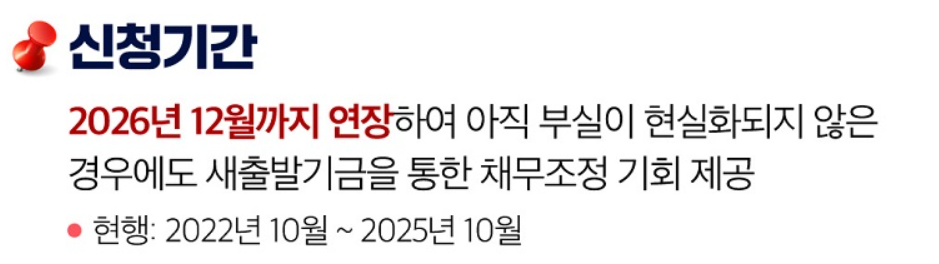 새출발기금 신청을 통해 상환기간은 늘려주고 금리부담을 낮추되 채무상환이 어려운 차주에게는