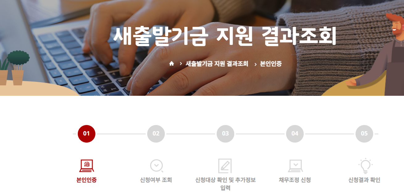□ 새출발기금 지원결과 조회를 위한 화면입니다.