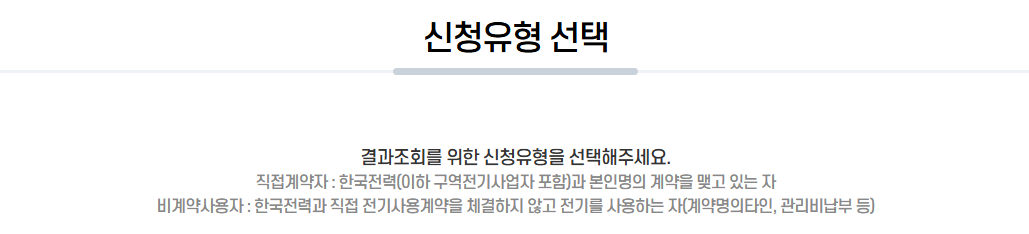 신청유형 선택 후 신청결과 확인이 가능합니다