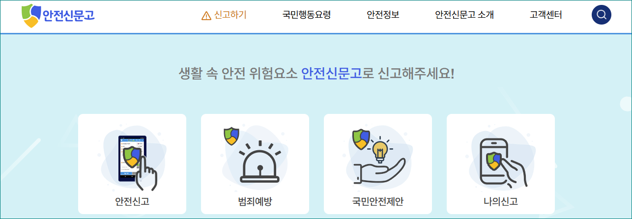 안전신문고 홈페이지를 통해 신고하는 방법