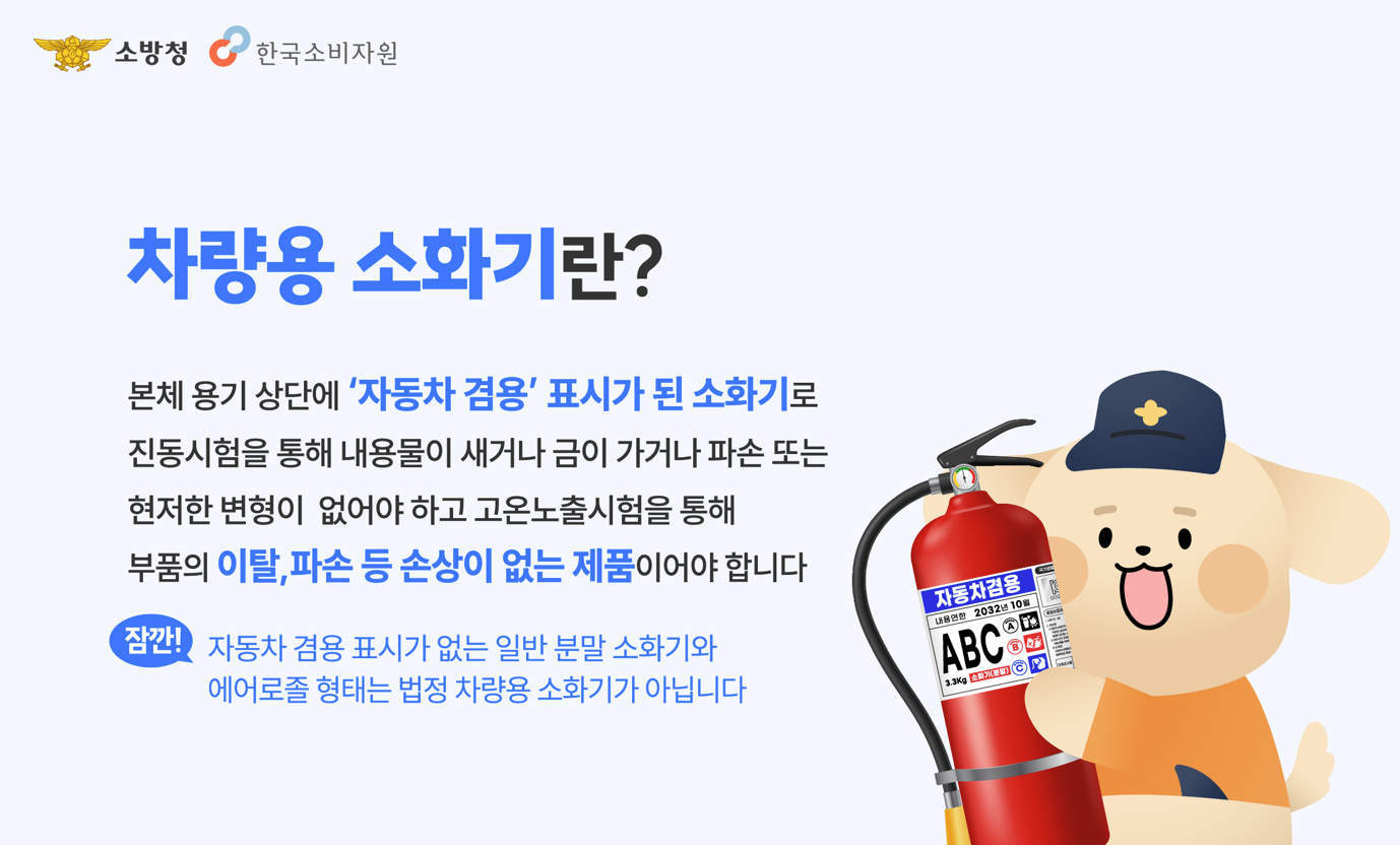 차량용 소화기는 초기 화재 단계에서 화재확산 방지와