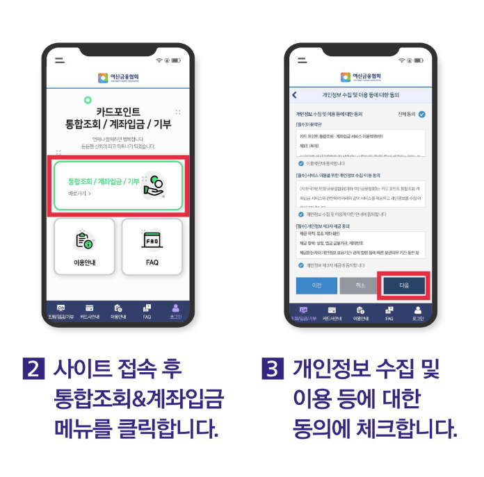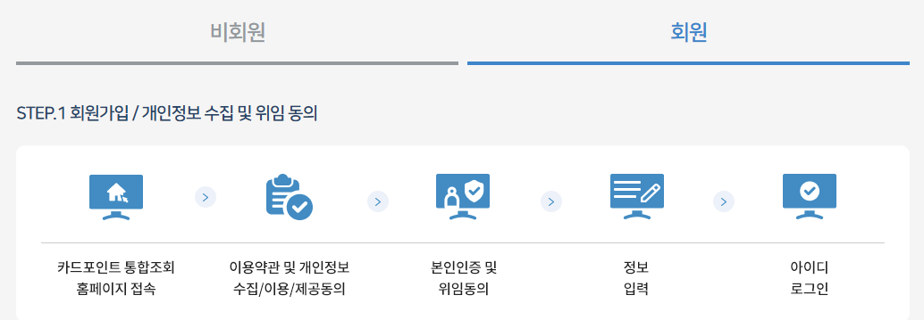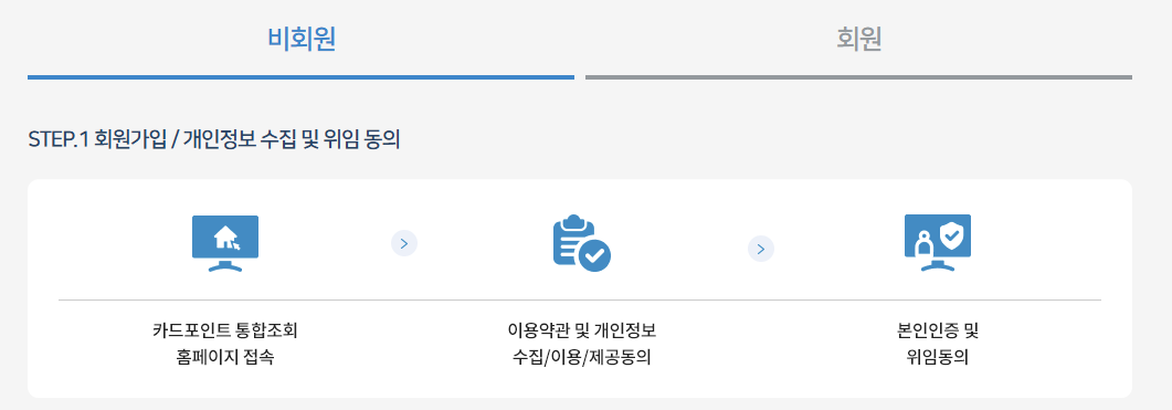 이후, 본인의 카드 정보를 입력하여 포인트를 조회합니다.