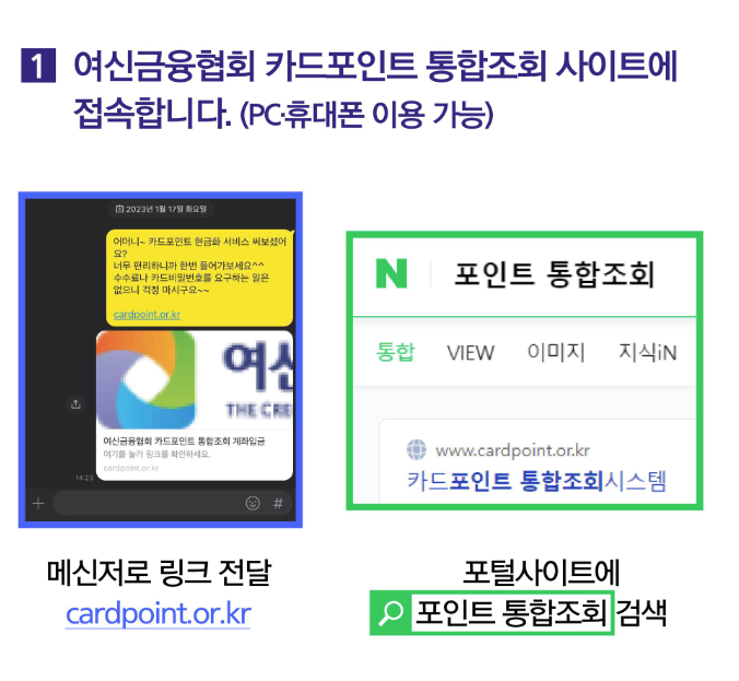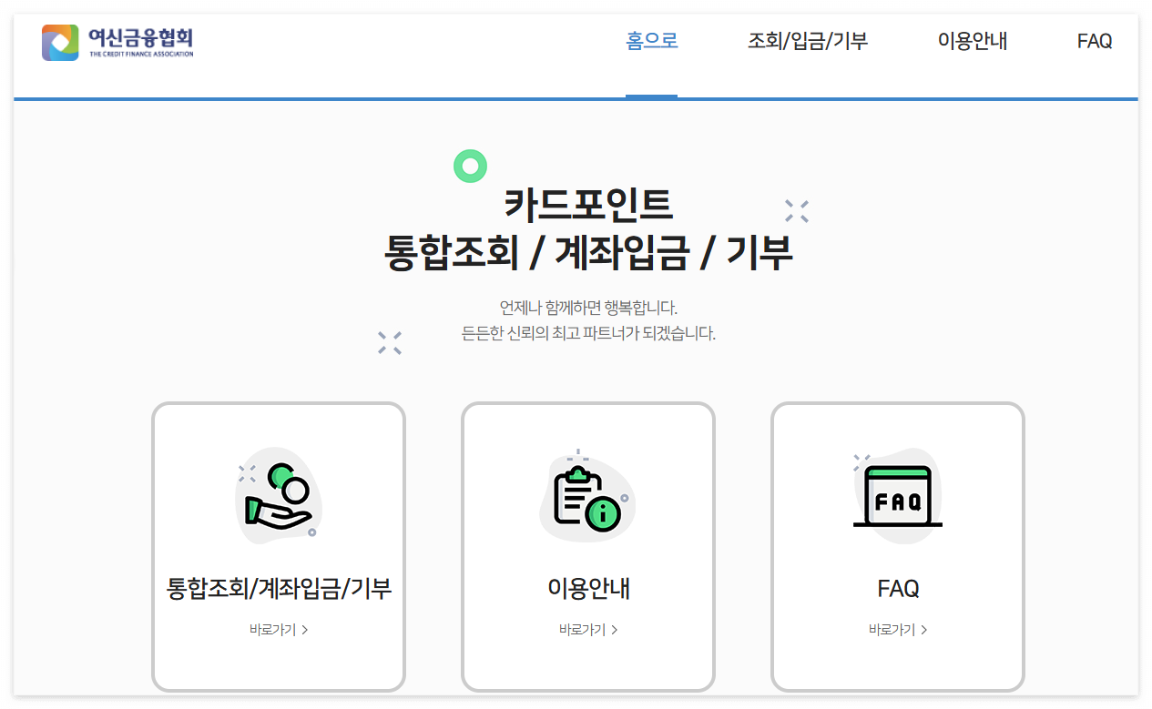 여신금융협회 카드포인트 통합조회 사이트에 접속합니다.