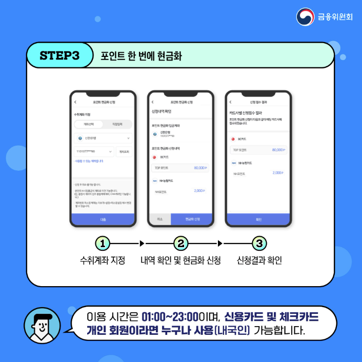포인트가 확인되면, 현금으로 전환할 금액을 선택하고 전환 신청을 하면 됩니다.