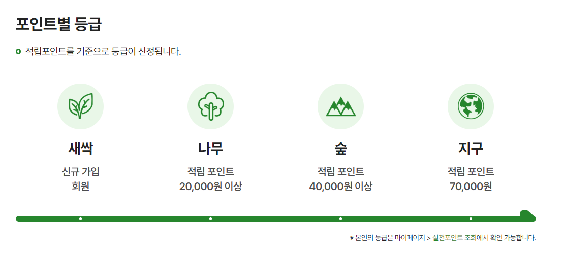 적립포인트를 기준으로 등급이 산정됩니다.