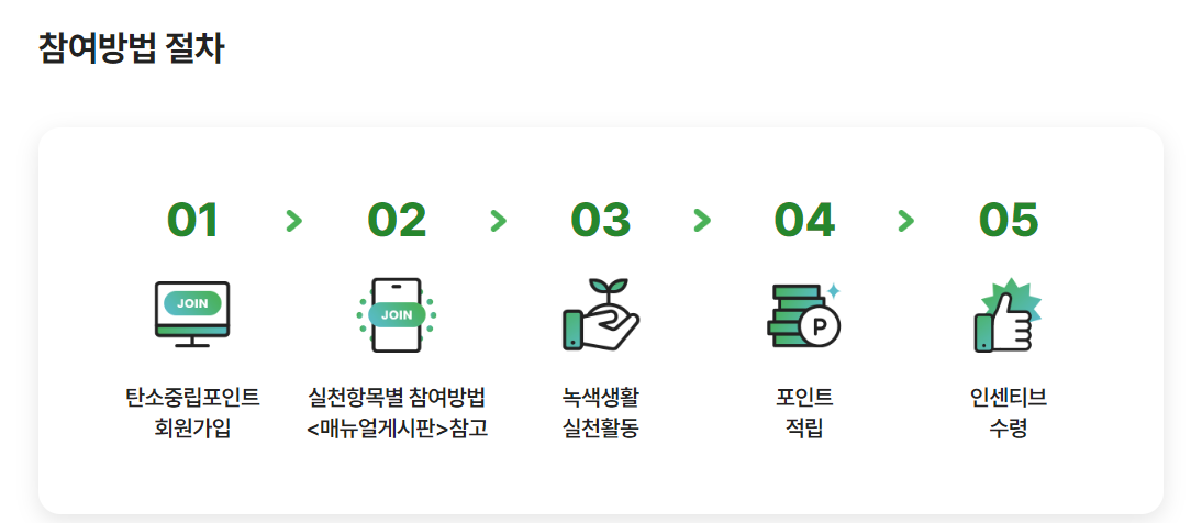 탄소중립포인트 누립집에 가입 후 인센티브 수령방법